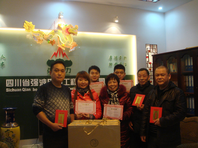在這一年里,公司涌現出一批“孝忠義做人,老實人做事”的典型。為激勵廣大員工爭先創優,公司通過民主的選舉評議后,決定對蒲禮成、官成興、潘國禮、羅娟、孫泉、劉雨、周磊7人授予“優秀員工”稱號并給予物品獎勵。希望公司全體員工以此為榜樣,在2012年的工作中再接再厲,不怕艱難,繼續奮斗,發揚強波精神!