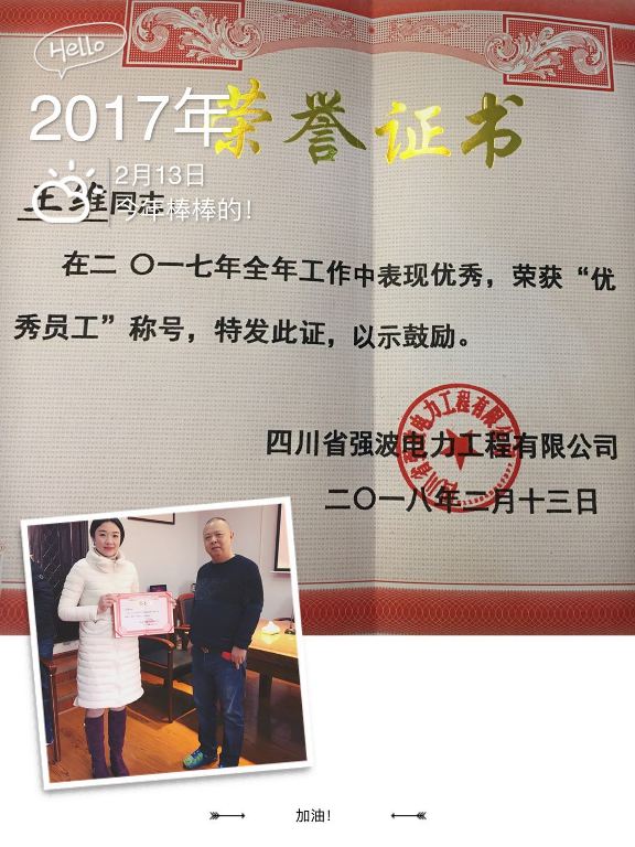 為弘揚員工一年來的辛勤工作及為公司做出的貢獻,同時為鼓勵更多的員工與時俱進、奮力拼搏,在平凡的崗位上創造出不平凡的業績。強波公司每年在年終會議上都會表彰一批先進工作者。2017年表彰大會上大家公平、公正、實事求是的選取了兩位優秀員工。